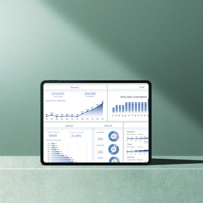 This simple yet powerful workbook makes tracking your monthly marketing stats effortless, so you can easily spot what’s working (and what needs tweaking). With charts and graphs that transform your data into clear insights, a space to monitor your paid and organic results across all platforms, and even a bonus expense tracker to keep your business finances organized, this dashboard is like having a personal marketing assistant in your pocket.